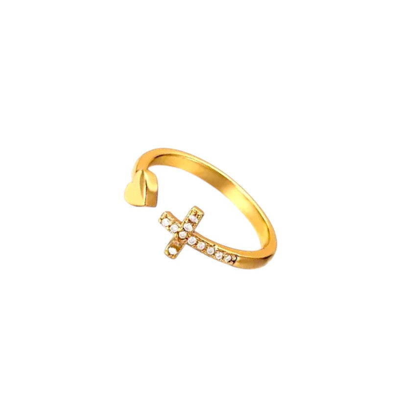 Anello in acciaio inossidabile placcato oro che unisce eleganza e simbolismo. Il design combina un delicato cuoricino con una fede classica, creando un pezzo versatile perfetto per chi ama gioielli dal significato profondo. La placcatura in oro conferisce un finish luminoso e raffinato, mentre l'acciaio inossidabile garantisce durabilità e resistenza nel tempo. Ideale da indossare singolo o abbinato ad altri anelli della collezione I'M MARTINA. Un accessorio che racconta una storia di amore e impegno, adatto a ogni occasione.