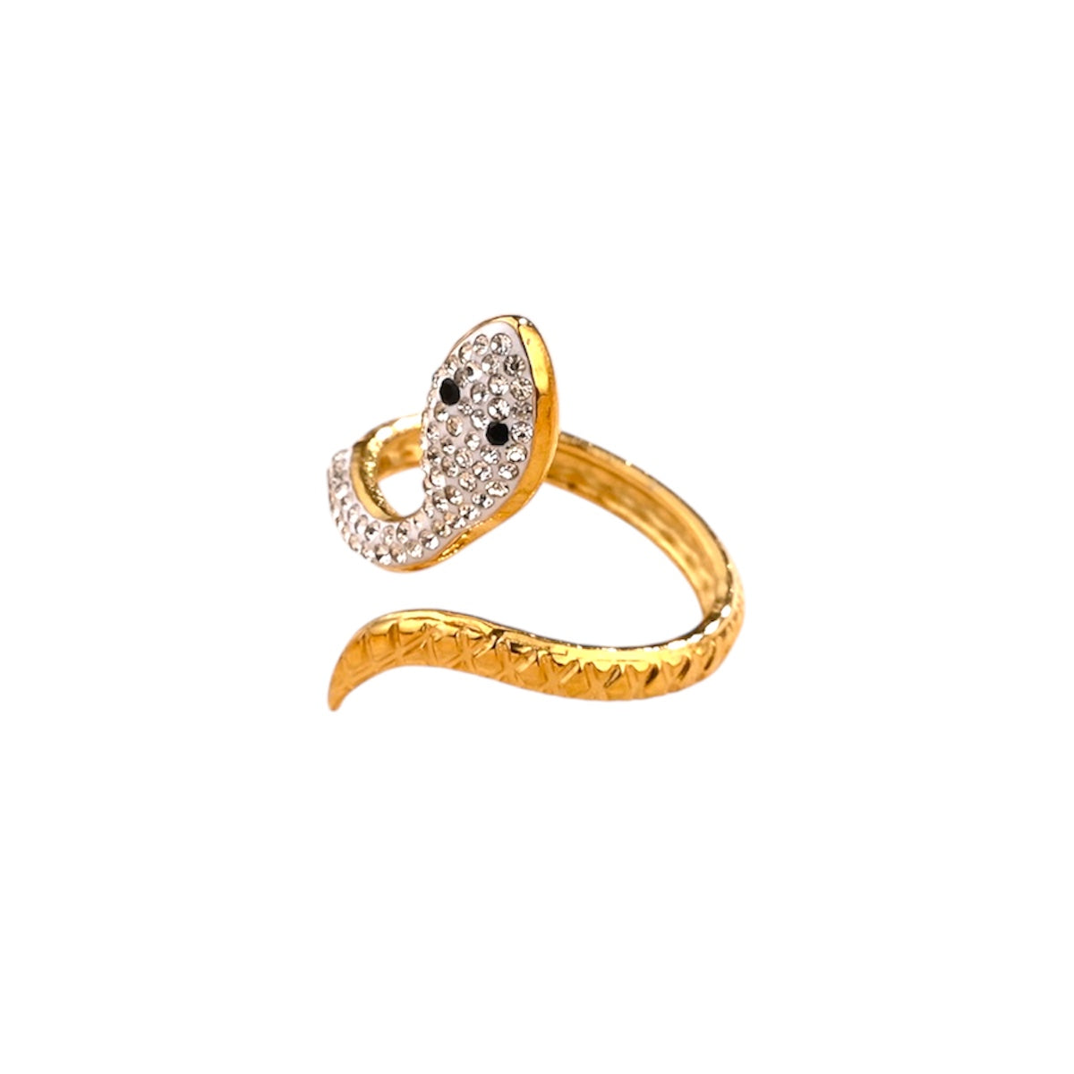 Scopri l'eleganza audace dell'anello little snake di I'M MARTINA. Questo delicato serpentino placcato oro, impreziosito da zirconi scintillanti, è realizzato in acciaio inossidabile anallergico, garantendo resistenza e brillantezza durature anche a contatto con l'acqua. Un gioiello sofisticato e versatile che aggiunge un tocco di fascino unico al tuo stile quotidiano.