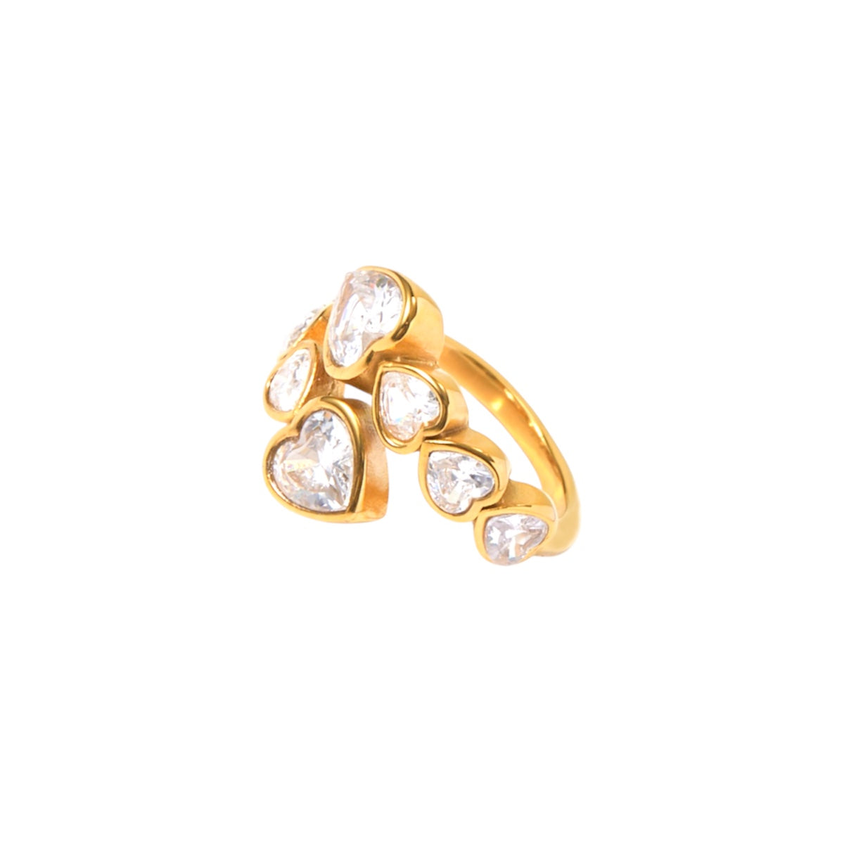 Questo anello Love di I'M MARTINA unisce eleganza e resistenza grazie alla sua realizzazione in acciaio inossidabile placcato in oro, impreziosito da cuori di zirconi brillanti. Il materiale anallergico garantisce comfort per tutto il giorno e una durata impeccabile, mantenendo la sua lucentezza anche a contatto con l'acqua. Un gioiello raffinato, perfetto per esprimere amore con stile e sicurezza.