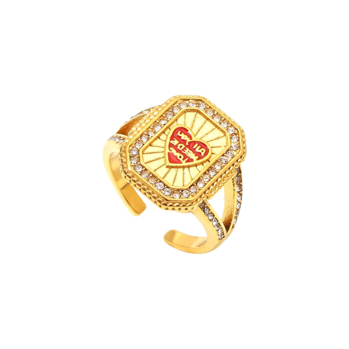Indossa il fascino senza tempo dell’anello scudo Love firmato I'M MARTINA. Realizzato in acciaio inossidabile anallergico placcato in oro, questo anello unisce eleganza e resistenza: non si ossida né perde splendore a contatto con l’acqua. Il design a forma di scudo con zirconi luminosi e un cuore centrale reca l’incisione “All you need Love”, rendendolo un simbolo prezioso di affetto e protezione da portare sempre con te. Un gioiello perfetto per chi vuole distinguersi con stile e significato.