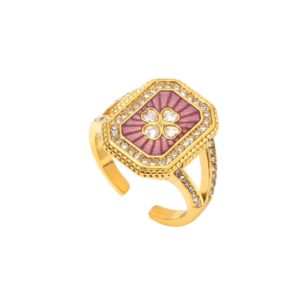 L'anello scudo quadrifoglio I'M MARTINA unisce eleganza e simbolismo in un design raffinato, placcato in oro con dettagli di zirconi scintillanti. Realizzato in acciaio inossidabile anallergico, assicura resistenza e durata nel tempo senza ossidarsi, anche a contatto con l'acqua. Elegante e sicuro per ogni occasione, questo gioiello diventerà il tuo portafortuna quotidiano.