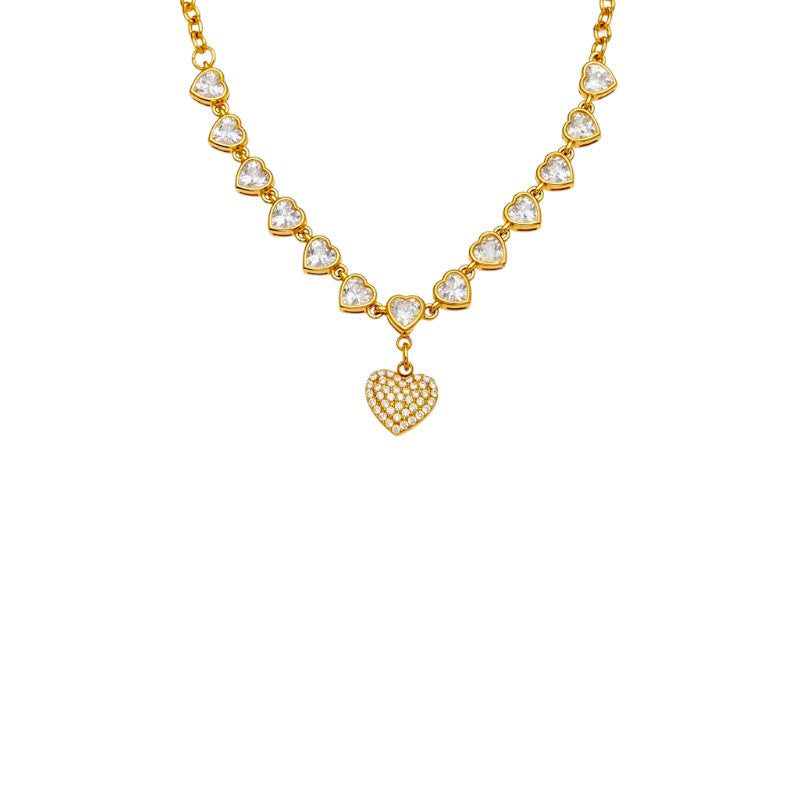 Collana in acciaio inossidabile che cattura l'essenza della dolcezza eterna. Caratterizzata da cuori zirconati che brillano con eleganza, questo pezzo combina durabilità e raffinatezza. L'acciaio inossidabile garantisce resistenza nel tempo, perfetto per chi desidera un accessorio che accompagni ogni momento della giornata senza compromessi sulla bellezza. Un gioiello che parla di sentimenti delicati con uno stile contemporaneo e sofisticato.