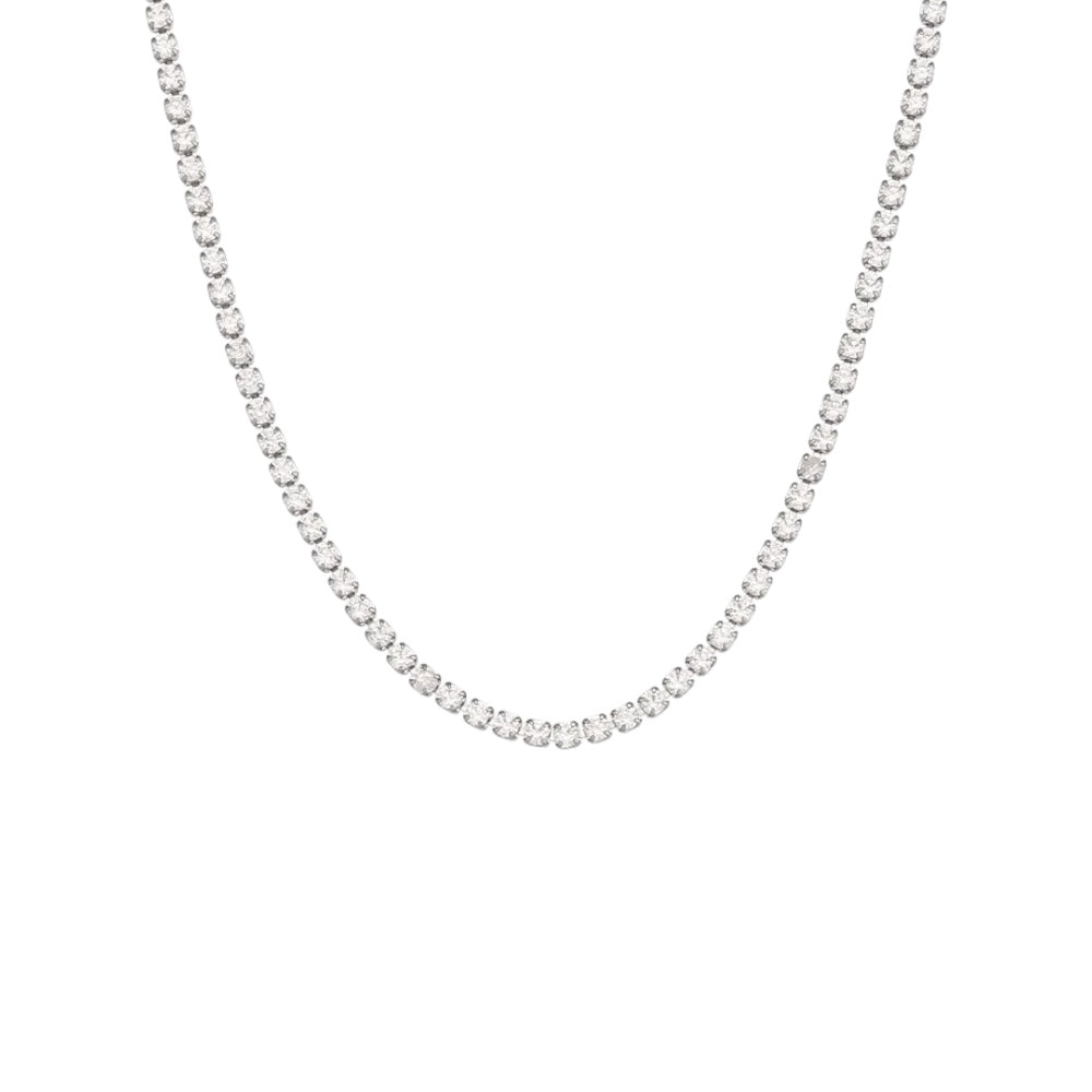 Eleganza senza compromessi con questa collana tennis in acciaio inossidabile placcato oro. Il design classico da 5mm si adatta perfettamente a qualsiasi occasione, dal quotidiano agli eventi speciali. La placcatura in oro garantisce un finish lussuoso e duraturo, mentre l'acciaio inossidabile assicura resistenza nel tempo. Un accessorio versatile che cattura la luce con stile raffinato, perfetto per chi cerca qualità e bellezza in un'unica scelta.