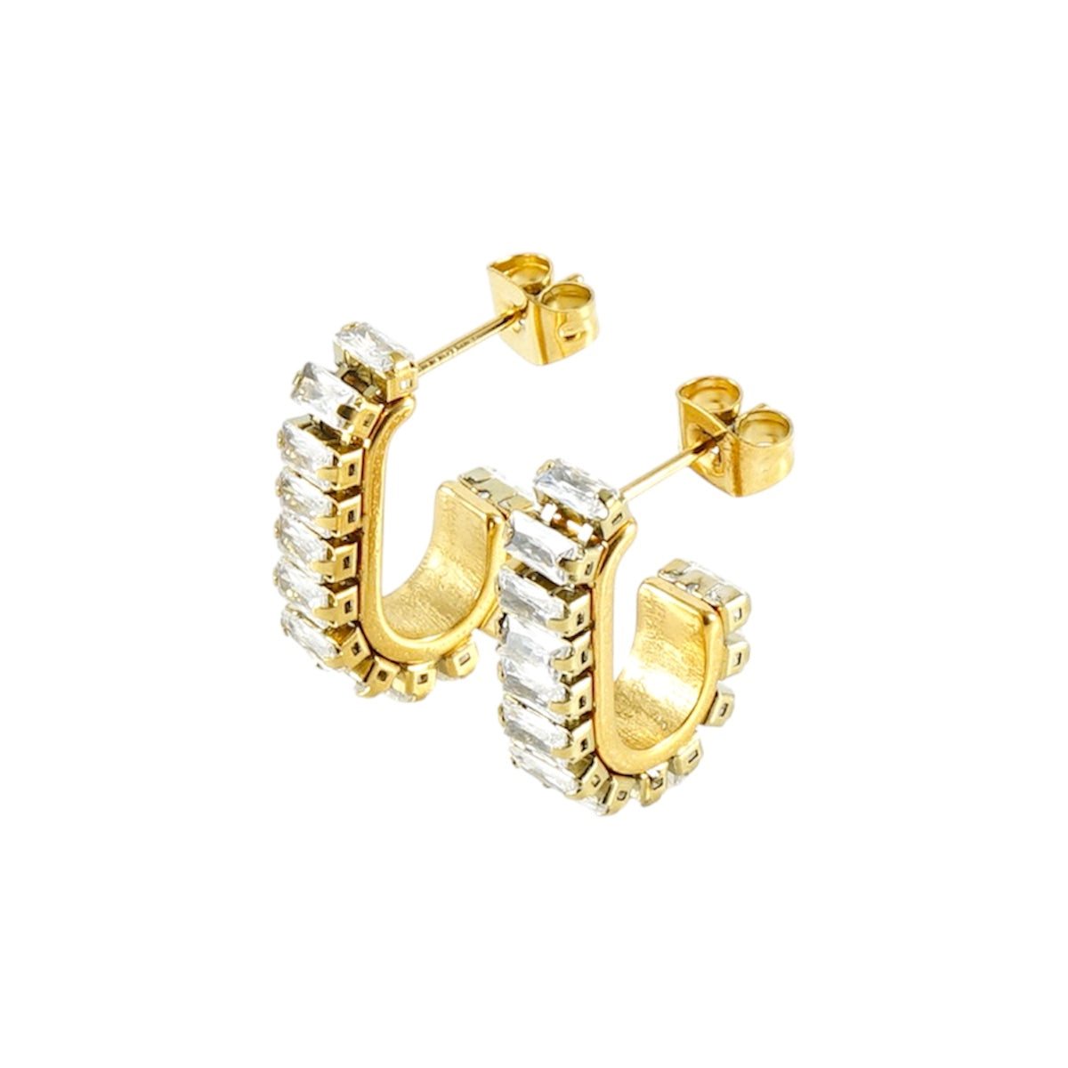 Gli orecchini I'M MARTINA sono realizzati in acciaio inossidabile placcato in oro, resistenti all’ossidazione e anallergici, ideali per essere indossati quotidianamente senza preoccupazioni. Arricchiti da zirconi rossi taglio baguette, aggiungono un tocco di eleganza e brillantezza a ogni tuo look, trasformando ogni occasione in un momento speciale con stile e comfort garantiti.