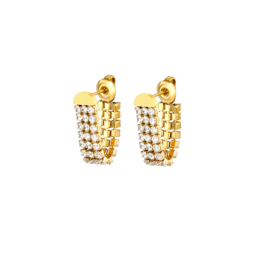Scopri l'eleganza senza compromessi con questi orecchini a cascata in acciaio inossidabile placcati in oro. Gli zirconi brillanti catturano ogni raggio di luce, creando un effetto luminoso che valorizza lo sguardo. Il design fluido e sofisticato si adatta perfettamente a qualsiasi stile, mentre la qualità dei materiali garantisce una bellezza duratura nel tempo. Indossa il lusso accessibile: un pezzo che trasforma ogni momento in un'occasione speciale.