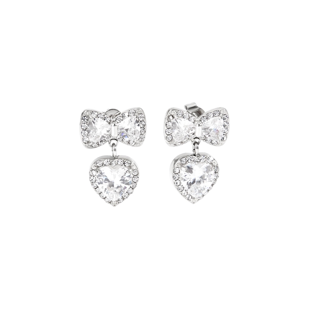 Questi orecchini a forma di fiocco con cuore impreziositi da zirconi uniscono eleganza e delicatezza. Realizzati in acciaio inossidabile anallergico, offrono resistenza all'usura quotidiana e mantengono splendore anche a contatto con l'acqua. Perfetti per chi cerca uno stile raffinato senza rinunciare a comfort e durata.