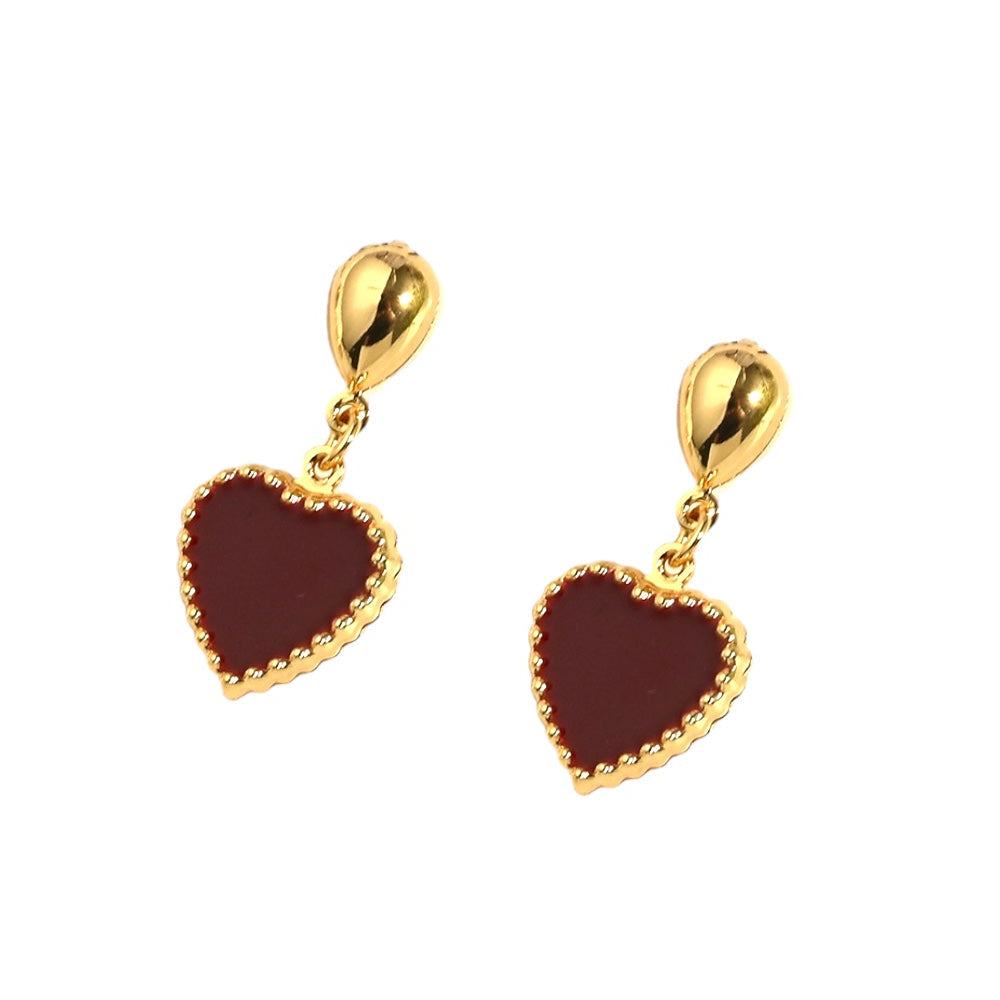 Orecchini delicati a forma di cuore rosso che catturano l'essenza del romanticismo. Realizzati in acciaio inossidabile placcato oro, combinano eleganza e durabilità per un accessorio che resiste nel tempo. Il design pendente aggiunge movimento e grazia al tuo look, perfetto per chi desidera un tocco di dolcezza quotidiana. Ideali da indossare da sole o abbinate ad altri gioielli, questi orecchini trasformano qualsiasi outfit in un'affermazione di stile sofisticato e femminile.