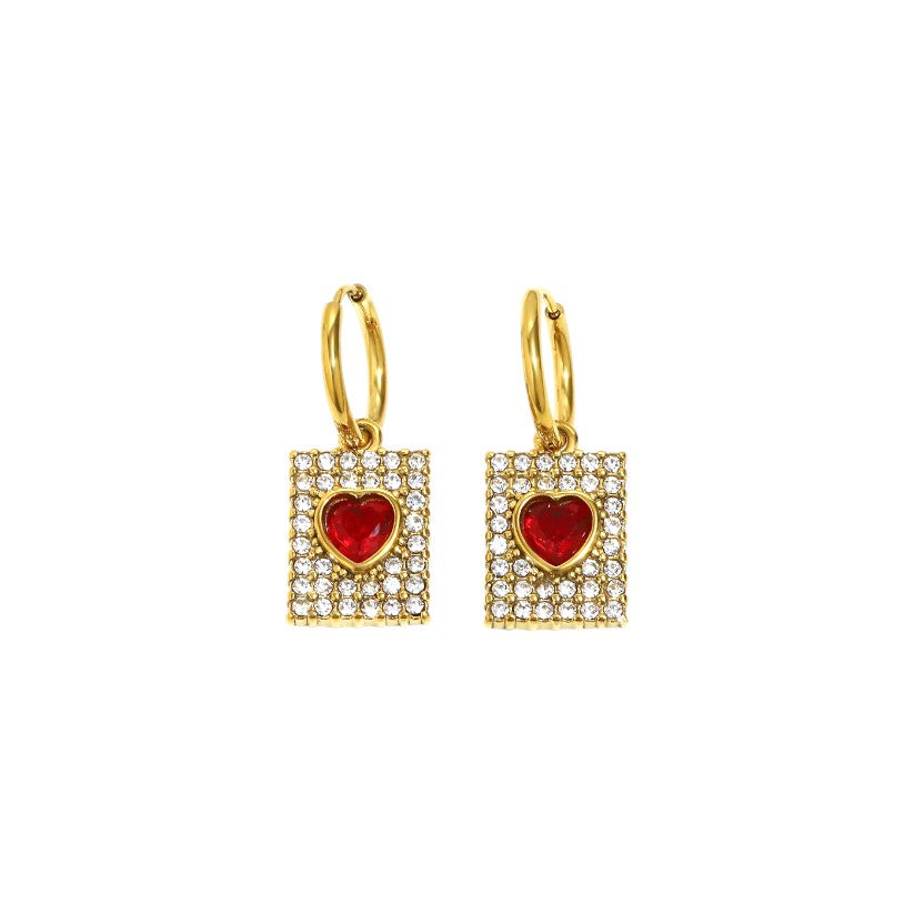 Scopri gli Orecchini Red Spark, il perfetto equilibrio tra eleganza e carattere. Realizzati in acciaio inossidabile placcato oro, questi orecchini catturano la luce con brillanti zirconi che circondano un affascinante cuore rosso centrale. Il design sofisticato li rende ideali per chi desidera un accessorio versatile: abbastanza delicato per l'uso quotidiano, ma con quel tocco di glamour che non passa inosservato. Resistenti e ipoallergenici, sono il compagno perfetto per ogni occasione.
